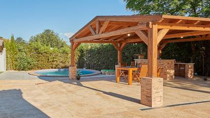 - oftmals ein Pool mit Sonnenliegen, teils auch ein Whirlpool