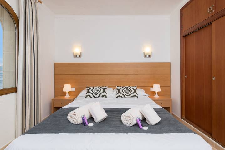 In Puerto de Alcudia befindet sich das Ferienhaus Can Jaume nur einen kurzen Spaziergang vom schönen Hafen entfernt. Die Ferienwohnung mit Meerblick befindet sich in der 4. Etage (mit dem Aufzug erreichbar) und ist stilvoll und modern eingerichtet. Sie besteht aus einem Wohn-/Esszimmer, einer gut ausgestatteten Küche mit Geschirrspüler, 2 Schlafzimmern (eines mit 2 Einzelbetten) sowie 2 Bädern. Die Unterkunft bietet somit Platz für 4 Personen. Zur Ausstattung gehören außerdem WLAN, Klimaanlage (im Wohnzimmer und im Flur vor den Schlafzimmern), eine Waschmaschine, ein Babybett und ein Hochst...