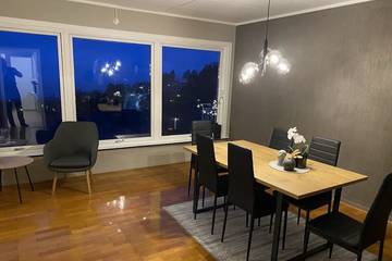 Diese Villa in Øygarden (6 Schlafzimmer, 4 Badezimmer) lässt keine Wünsche offen. Wer die Natur liebt und gerne an der frischen Luft ist, kann mit dem Auto in nur 44 Minuten hierher fahren: Festplassen. Ebenfalls nur 58 Autominuten entfernt befindet sich Folgendes: Mt. Floyen. Wenn du die interessante Umgebung erkunden möchtest, bieten sich Hurtigruten Anlegestelle (43 Autominuten entfernt) und ODEON Sotra (29 Autominuten entfernt) an. Während deines Aufenthalts kannst du den gleichen Komfort wie zu Hause oder sogar noch mehr genießen, so gibt es zum Beispiel WLAN und eine Heizung sowie ein...