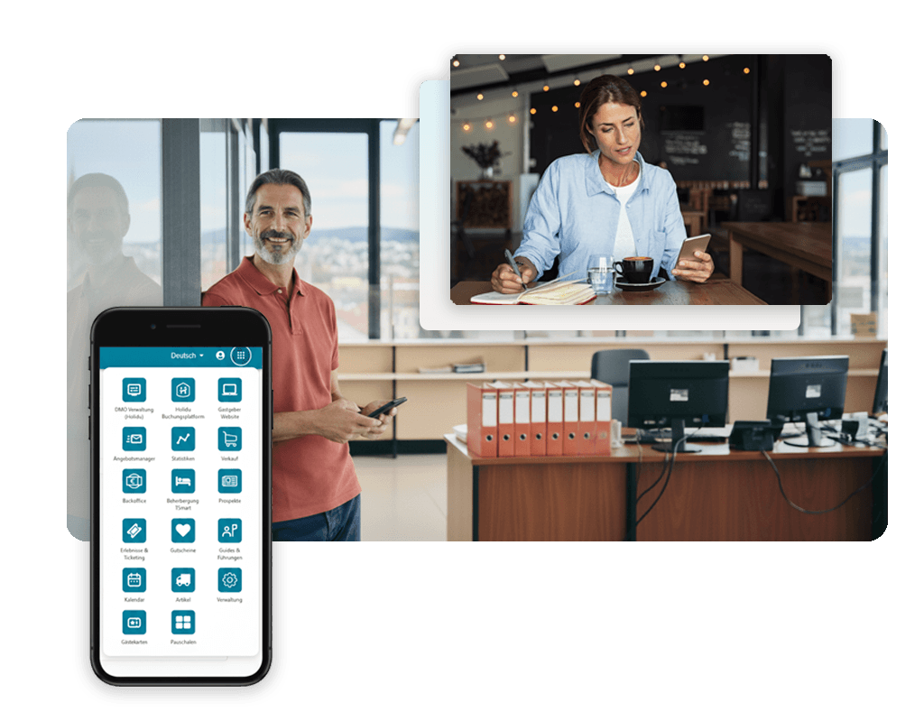 Alle Bereiche des Destinationsmanagements in einem modularen System. Unterkunft, Erlebnisse, Prospekte, Gästekarten und mehr - klar strukturiert, erweiterbar und ohne Schnittstellenchaos.