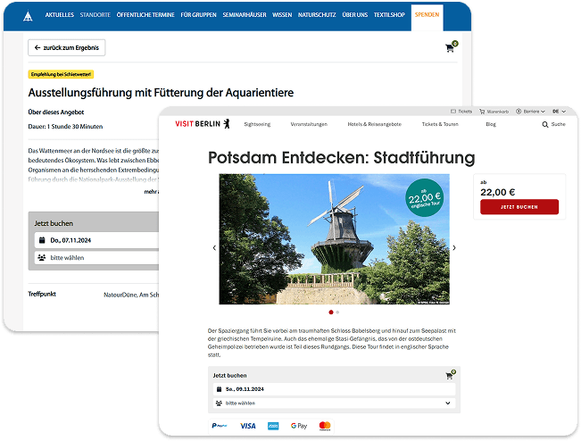 Der Webshop lässt sich als Widget direkt in Ihre Seite einbetten. Farben und Schriften passen sich an Ihr regionales Branding an. Gäste bleiben auf Ihrer Domain und erleben eine kurze, moderne Buchungsstrecke. Auch Partnerseiten können das Widget nutzen – ohne zusätzlichen Pflegeaufwand. So erhöhen Sie Direktbuchungen, behalten die Kontrolle über Marke und Prozess und stärken dauerhaft Sichtbarkeit und Qualität im Erlebnisbereich.